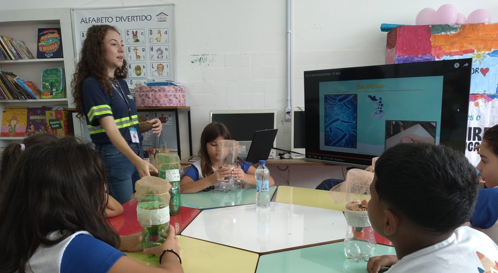 Para dar continuidade às atividades de educação ambiental, a CASAN realizou, nesta quinta-feira (02), uma nova atividade com crianças atendidas pelo projeto social Bairro Educador do Monte Verde. O tema abordou o processo de compostagem e sua importância para a redução do resíduos orgânicos produzidos dentro de casa.