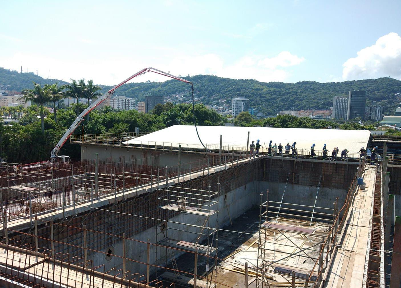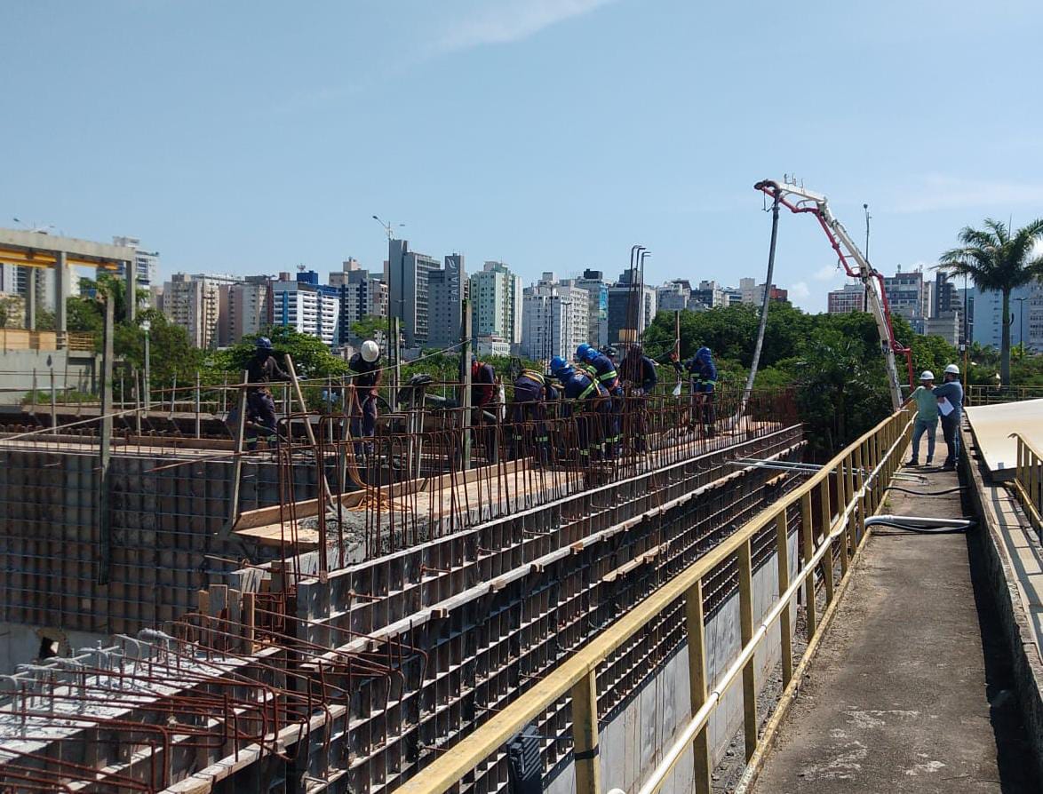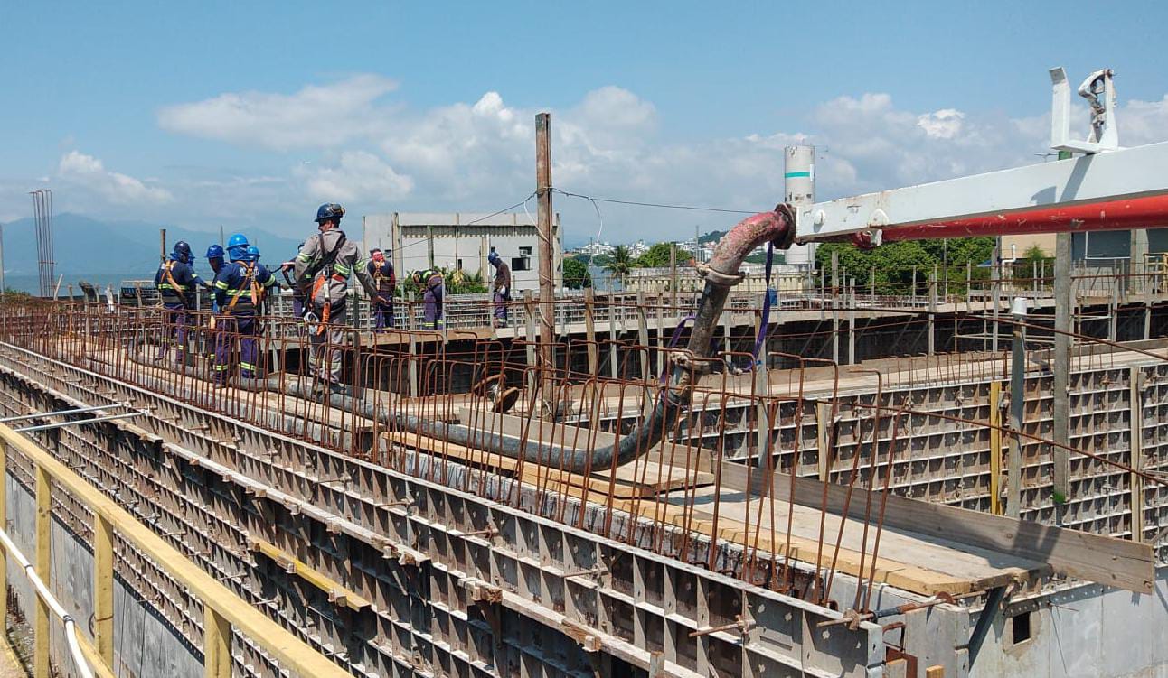 Quase 50 metros cúbicos de concreto foram usados esta semana em mais uma ação de concretagem das novas estruturas da Estação de Tratamento de esgotos Insular, em Florianópolis.