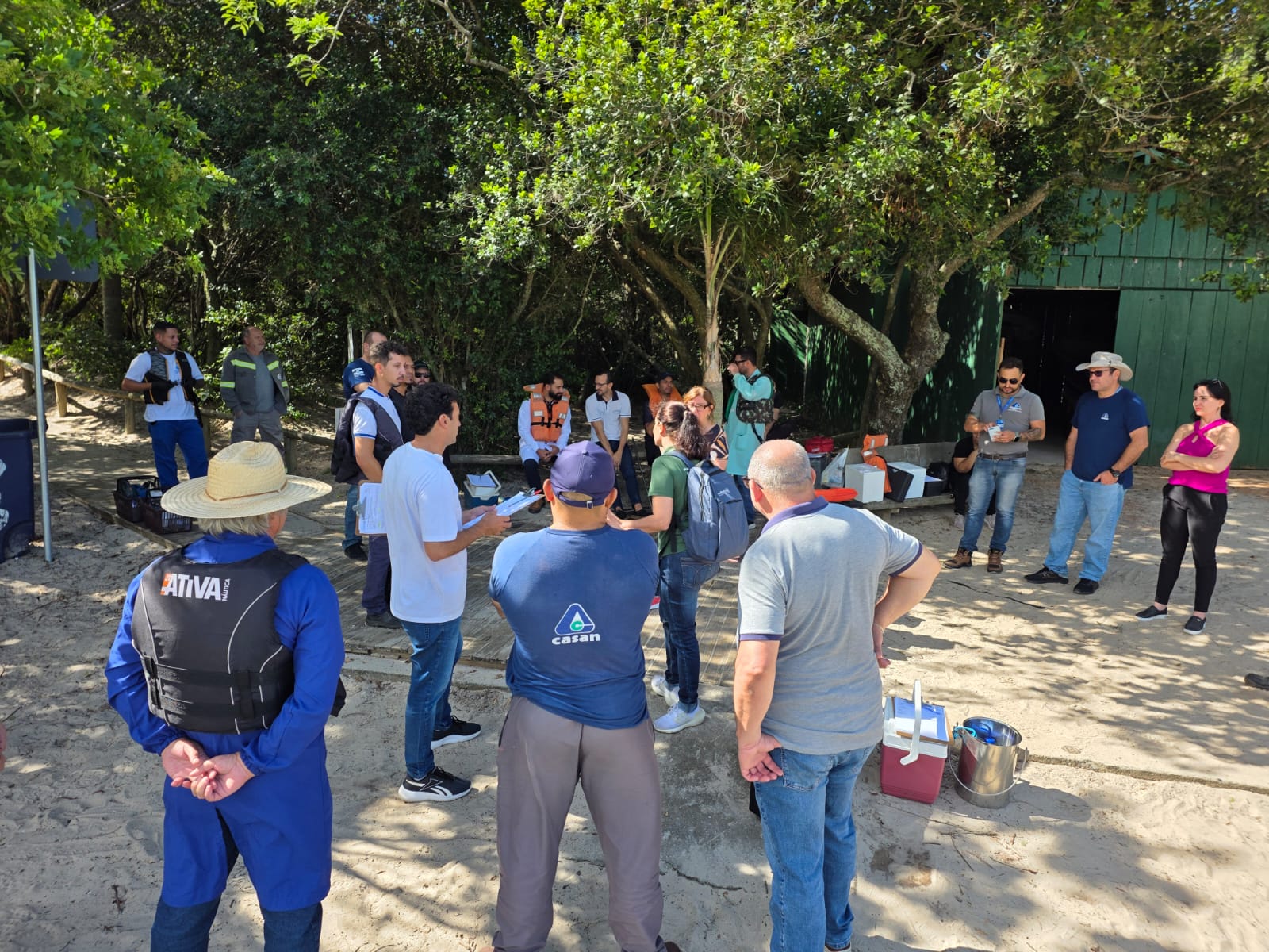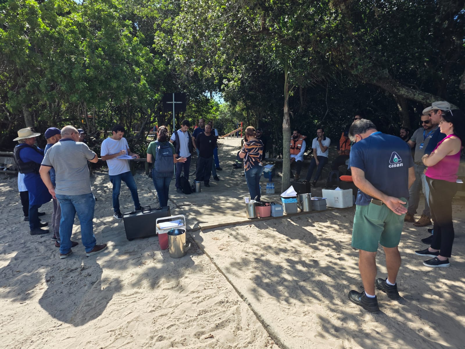 Representantes de laboratórios reunidos na região da Lagoa do Peri, em Florianópolis. Foto: Acervo CASAN.