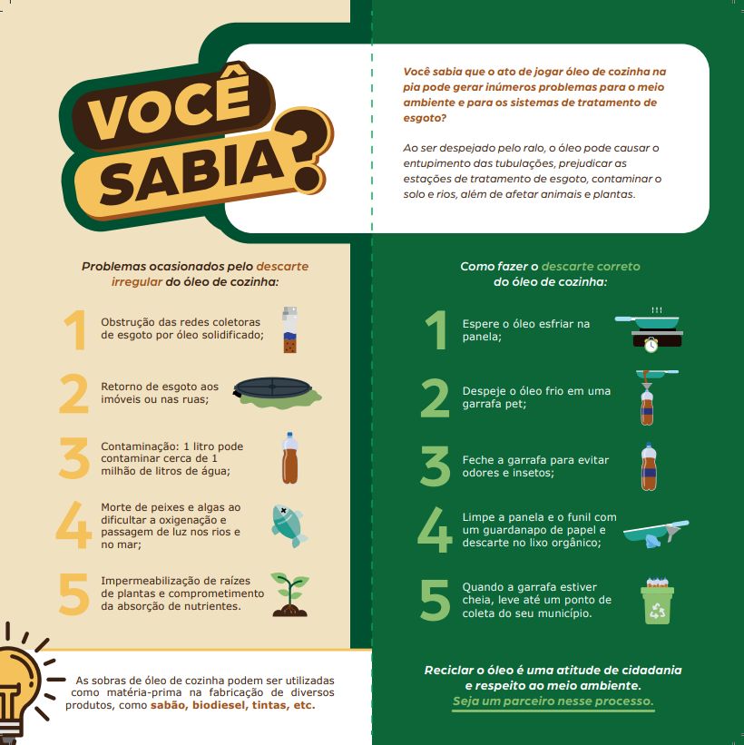 Quando despejado na pia, o óleo pode causar o entupimento das tubulações internas e da rede de coleta da CASAN, comprometendo o funcionamento da infraestrutura de saneamento.