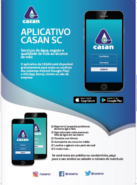 Além de contar com acessos a todos os seus serviços no site www.casan.com.br, a CASAN conta com vários outros canais para facilitar o contato com seus usuários e agilizar a comunicação de problemas como a falta de água.