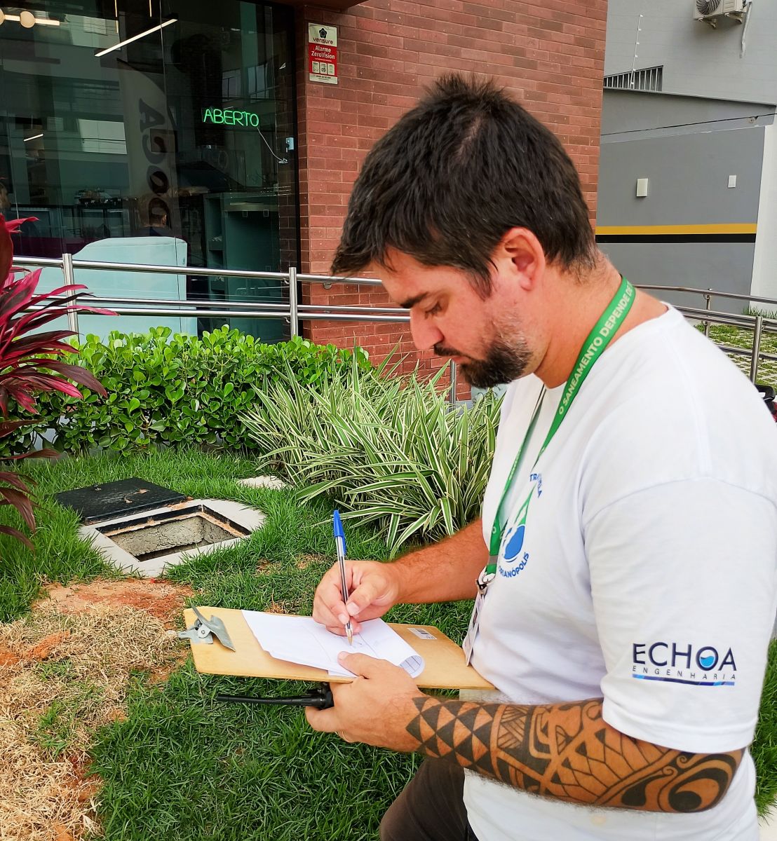 Uma das ações mais recentes aconteceu em Coqueiros, em um condomínio de sete andares, com 22 apartamentos e três salas comerciais. Essa foi a segunda visita da equipe ao local. Na primeira vistoria, foram identificados problemas como ausência de caixa de gordura, água pluvial conectada à rede de esgoto e esgoto ligado à rede pluvial. Na segunda vistoria, os técnicos constataram que alguns pontos ainda precisavam ser corrigidos. Por isso, orientaram o responsável pelo prédio sobre as adequações necessárias para a regularização, e uma nova visita foi agendada.