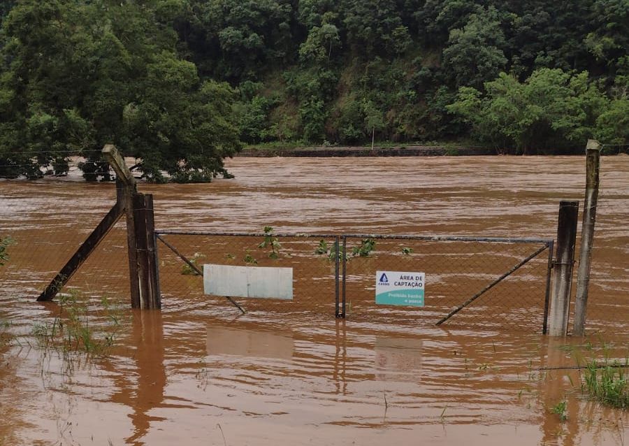 Alto nível do Rio Uruguai compromete bombas flutuantes para captação de água para Mondaí. Abastecimento mantido, porém sistema em observação.