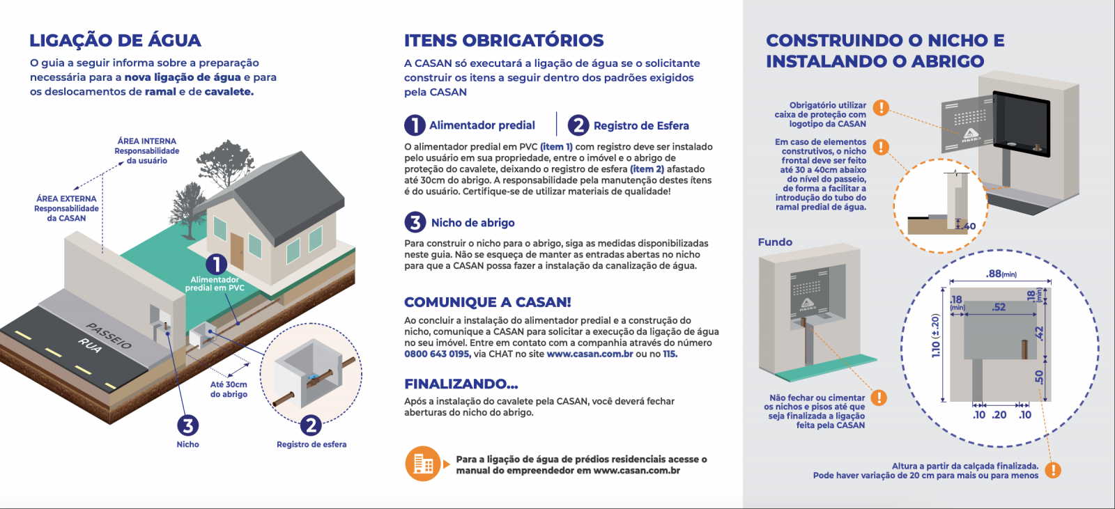 Para conexão dos imóveis na nova rede de forma adequada, a CASAN vai realizar um mutirão orientando sobre a instalação do abrigo-padrão. Esse abrigo é o local onde fica localizado o hidrômetro, sendo importante para garantir mais segurança ao equipamento, além de mais facilidade na manutenção e na leitura.A construção do abrigo-padrão é responsabilidade do usuário, e a Companhia é encarregada de instalar o hidrômetro, serviço cobrado em uma fatura posterior. Caso o morador tenha dúvidas, pode também procurar a agência localizada na Avenida São João, 775, Sala 03, Centro de Faxinal dos Guedes.