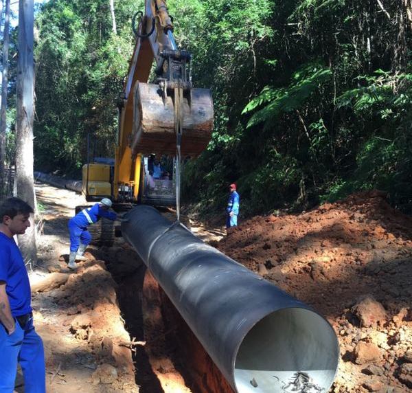 Conforme anunciado em meio ao reparo da adutora de 800mm rompida em um deslizamento de terra no mês de maio, a CASAN prossegue a obra de desvio da tubulação que capta água bruta do Rio Pilões, em Santo Amaro da Imperatriz. A meta é concluir a obra no mês de julho.