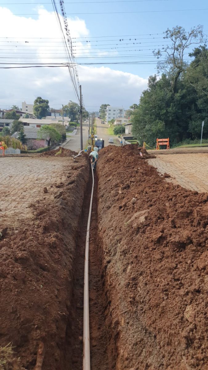 A CASAN de Catanduvas está executando a substituição de rede na Rua da Pátria, no bairro Centro. São 250 metros de tubulação, instalados agora para o futuro asfaltamento no local, que será realizado pela Prefeitura do município.
