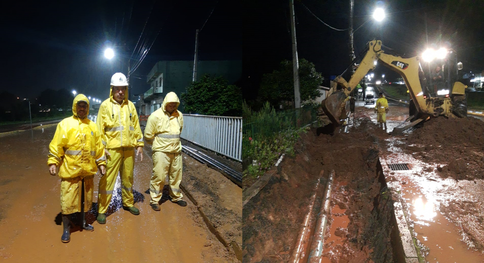 Equipes da CASAN atuando em conserto de adutora em Ponte Serrada, no Oeste. Foto: Acervo CASAN.