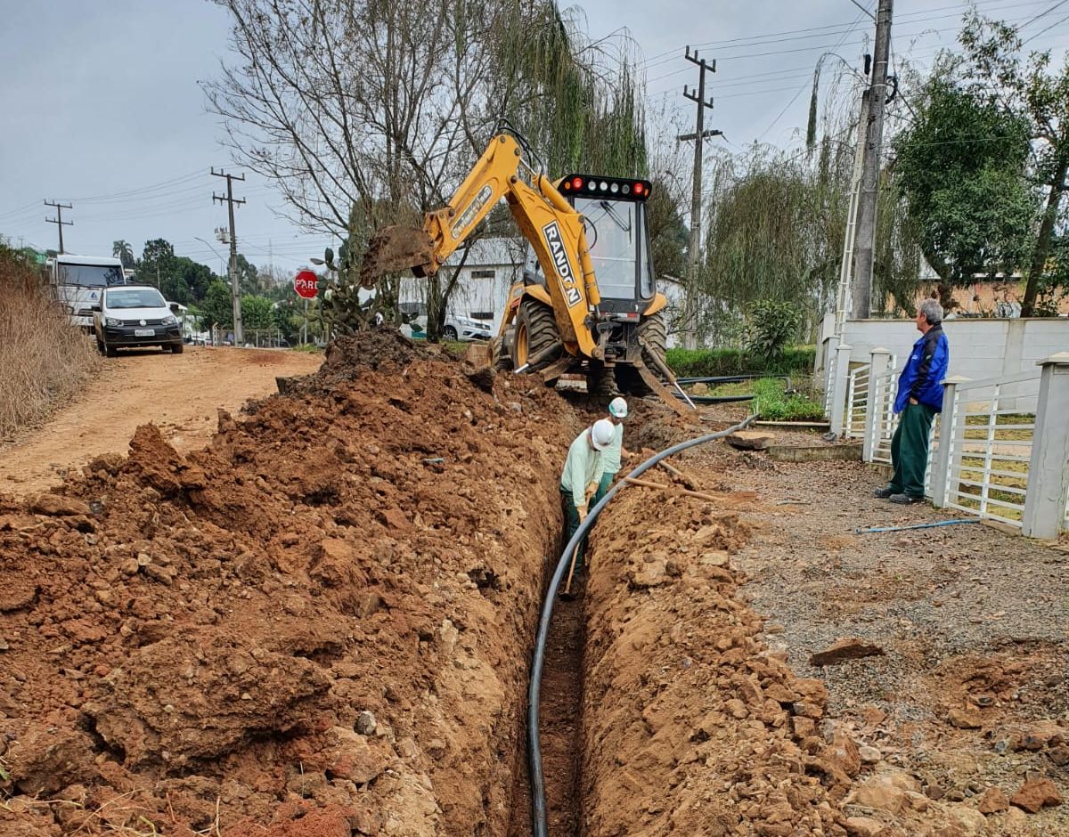 “A obra já foi concluída, faltando apenas a interligação das residências à rede, que será retomada com a diminuição das chuvas”, explica a chefe da CASAN em Catanduvas, Dirlete Lourdes Téo.
