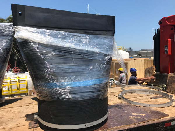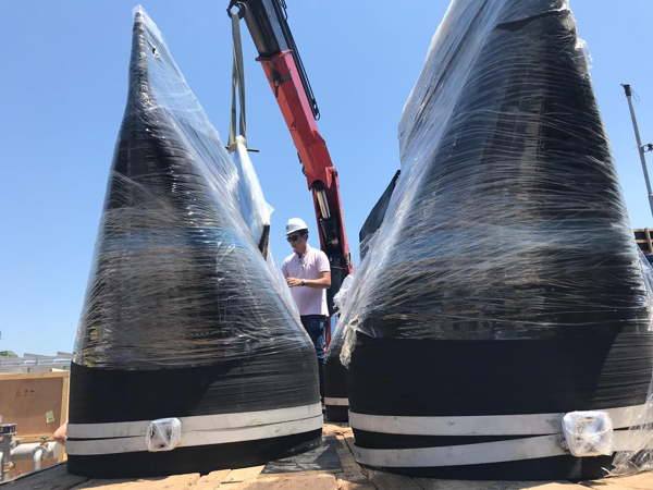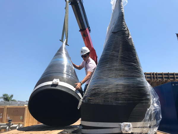 Os equipamentos importados foram adquiridos na cidade de Costa Mesa, Califórnia (EUA), para serem instalados junto às 15 estruturas de concreto que foram assentadas ao longo de 3,5 quilômetros da orla.