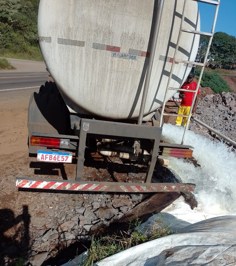 Para manter o abastecimento, prejudicado com a queda severa do nível do Rio Suruvi, desde o início do ano, de forma alternada, a CASAN faz o transporte de água bruta do Rio Uruguai.