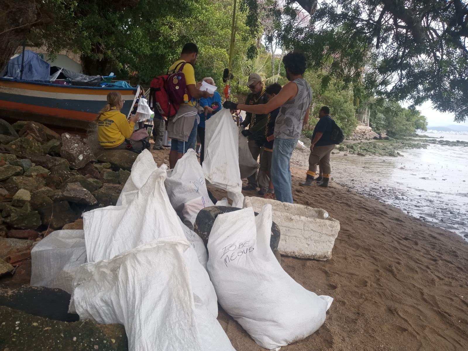As equipes se dividiram para a limpeza no trecho conhecido como praia do Barcela, e do manguezal do Saco Grande, que compõem a Estação Ecológica de Carijós, unidade de conservação de proteção integral da natureza com grande importância ecológica para o município.