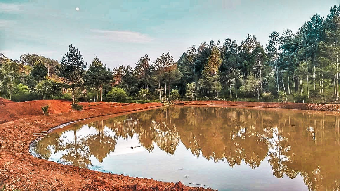 A lagoa de captação que estava com profundidade média de 50cm agora está entre 2 e 3 metros de lâmina de água