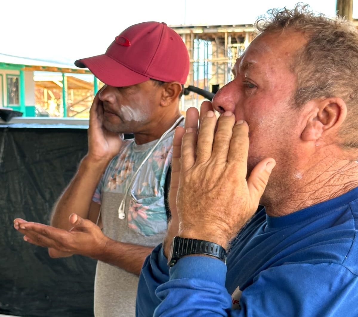 Diariamente, durante os diálogos de segurança, os trabalhadores são orientados a beber bastante água e usar protetor solar, disponibilizado pela construtora. Além de usar os EPIs (Equipamento de proteção individual), que também protegem do sol.