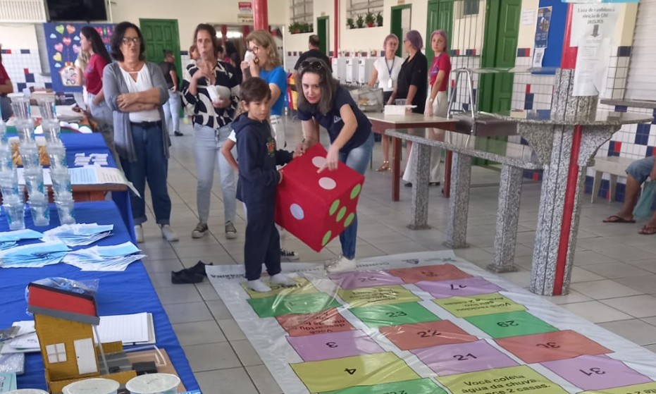Dia da Família na Escola: ‘tabuleiro humano’ ensina sobre saneamento em Laguna