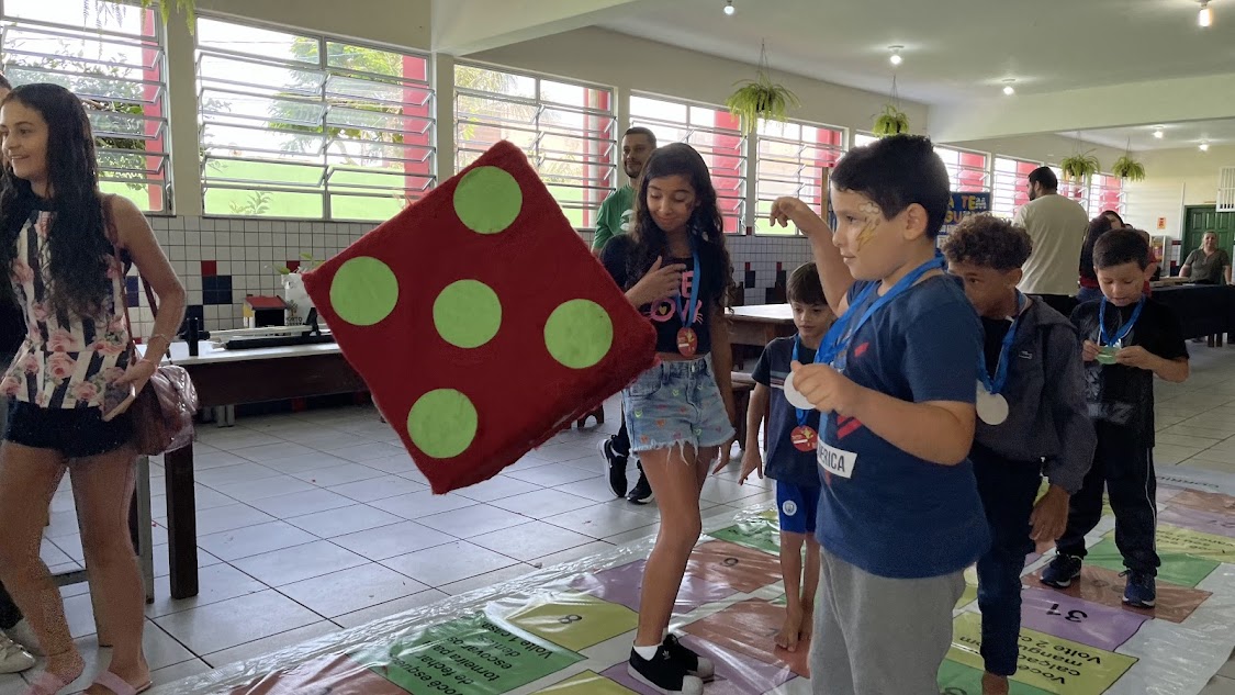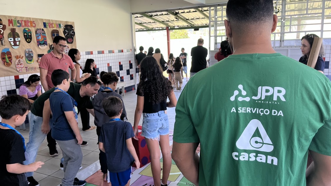 A principal atração foi a “Corrida Divertida”, um jogo em que os alunos se tornam peças de um tabuleiro gigante para aprender, de forma lúdica, conceitos sobre saneamento básico e preservação ambiental.