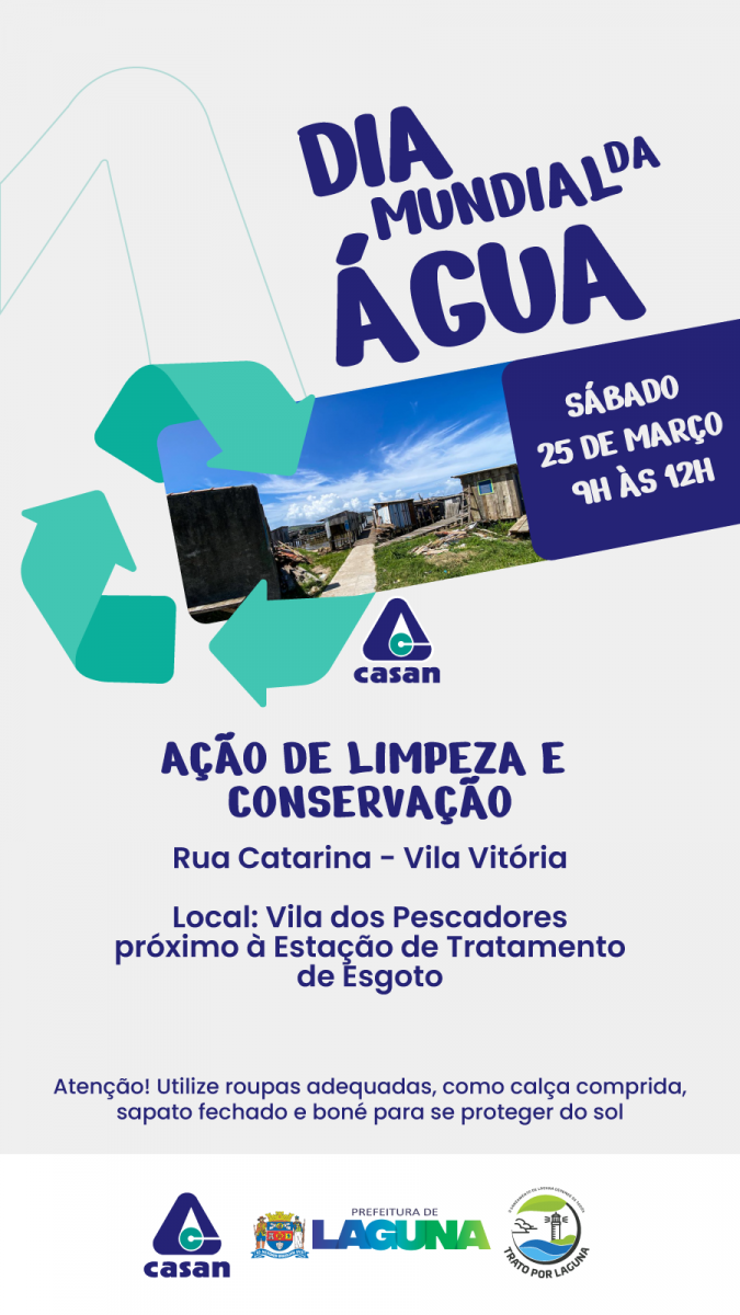 Laguna / Trato por Laguna A equipe do Trato por Laguna vai trabalhar em parceria com a Secretaria de Pesca e Agricultura da Prefeitura, executando limpeza da Vila dos Pescadores, na comunidade da Vila Vitória, próximo à Estação de Tratamento de Esgoto da CASAN. No local há uma grande quantidade de lixo próximo à beira da principal lagoa do município. A partir de 9h, com ponto de encontro na rua Catarina, em frente aos sarilhos. |