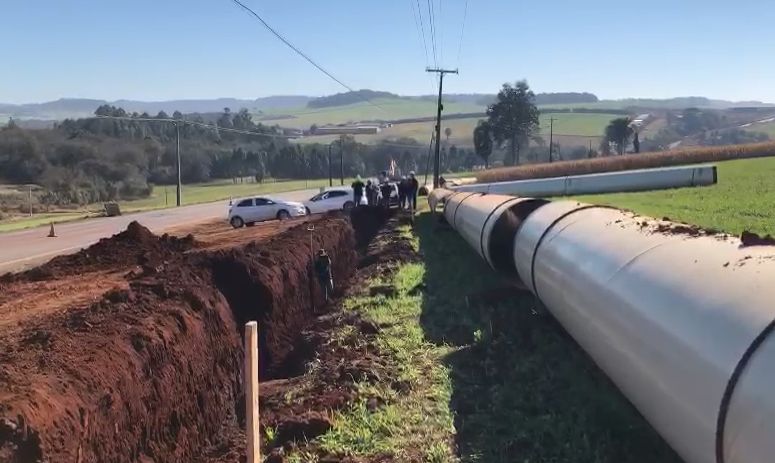O grupo inspecionou também locais em que já ocorre o assentamento das tubulações em aço carbono que formarão a macroadutora de 57 quilômetros de extensão, desde a Estação de Recalque de Água Bruta até seu ponto final, em Chapecó, a maior cidade do Oeste.
