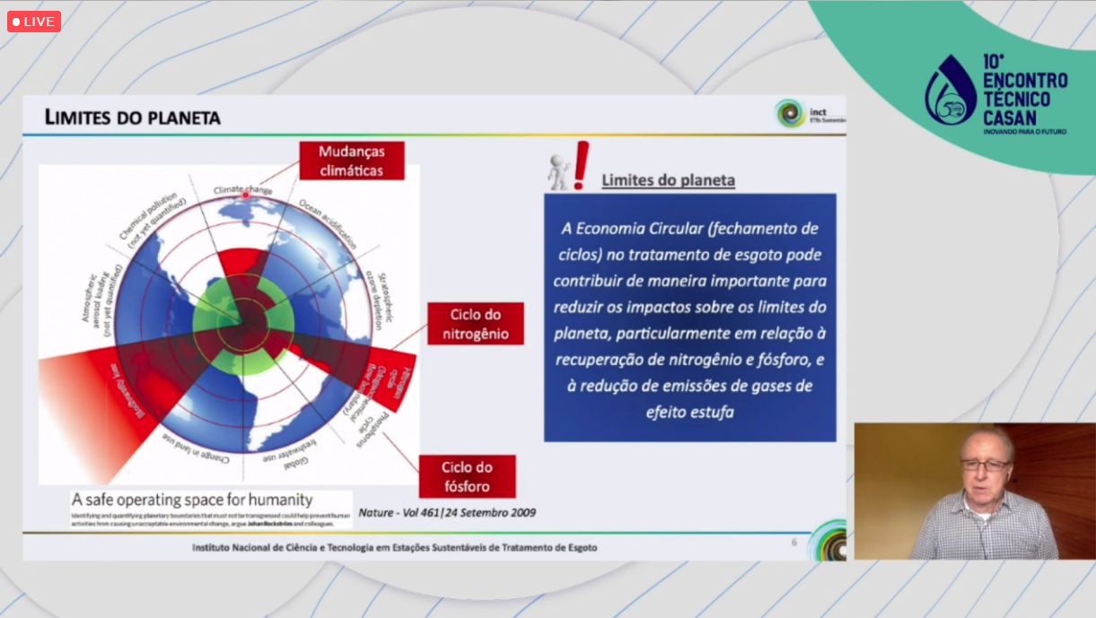 O coordenador do Instituto Nacional de Ciência e Tecnologia em Estações Sustentáveis de Tratamento de Esgoto (INCT ETEs Sustentáveis), Carlos Chernicharo, abriu a programação desta quarta-feira (6) do 10º Encontro Técnico CASAN. Durante a palestra, ele apresentou um panorama sobre as potencialidades do reúso dos subprodutos gerados pelo tratamento de esgoto.