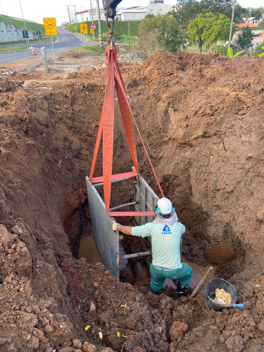 Equipes da CASAN trabalham no conserto de adutora em Içara