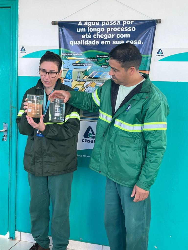 As turmas serão recebidos pela educadora ambiental Natasha Seitenfus, que compartilha com os visitantes informações sobre o tratamento da água, a importância do saneamento e da conservação ambiental.
