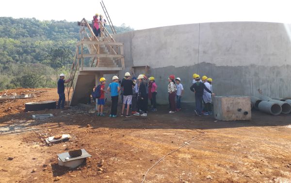 Na manhã desta sexta-feira, 31 de agosto, as equipes da Casan, do Consórcio Trix-Infracon e do Projeto Socioambiental receberam aproximadamente 100 alunos do Ensino Fundamental no canteiro de obras da Estação de Tratamento de Esgoto de Concórdia. O objetivo da visitação foi esclarecer como vai se dar o funcionamento do Sistema de Esgotamento Sanitário que está em implantação no município.