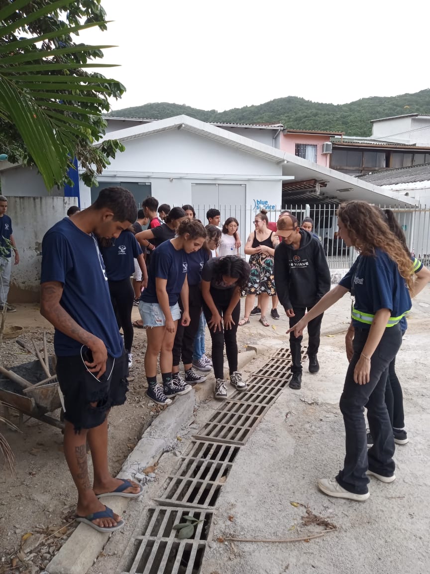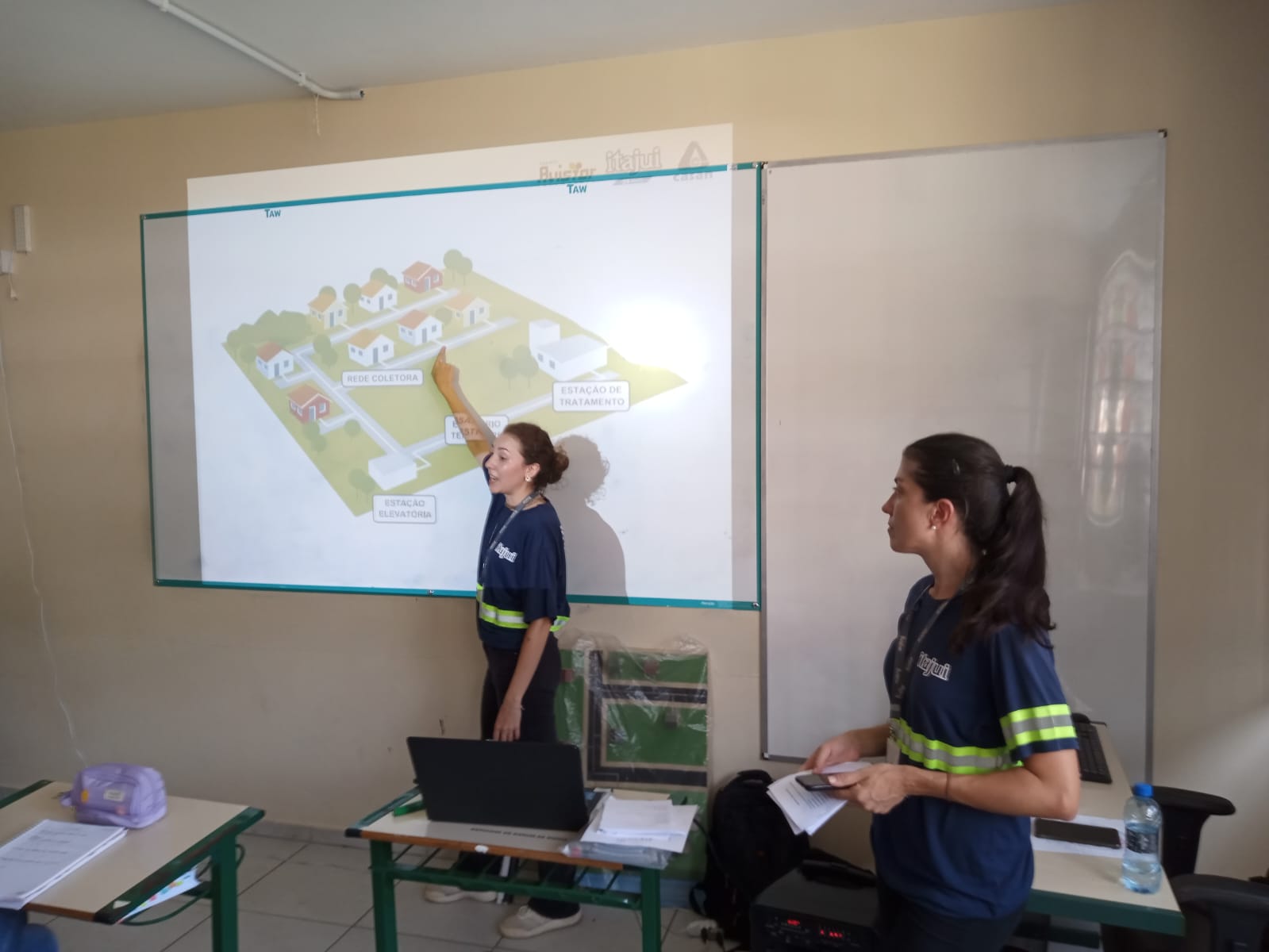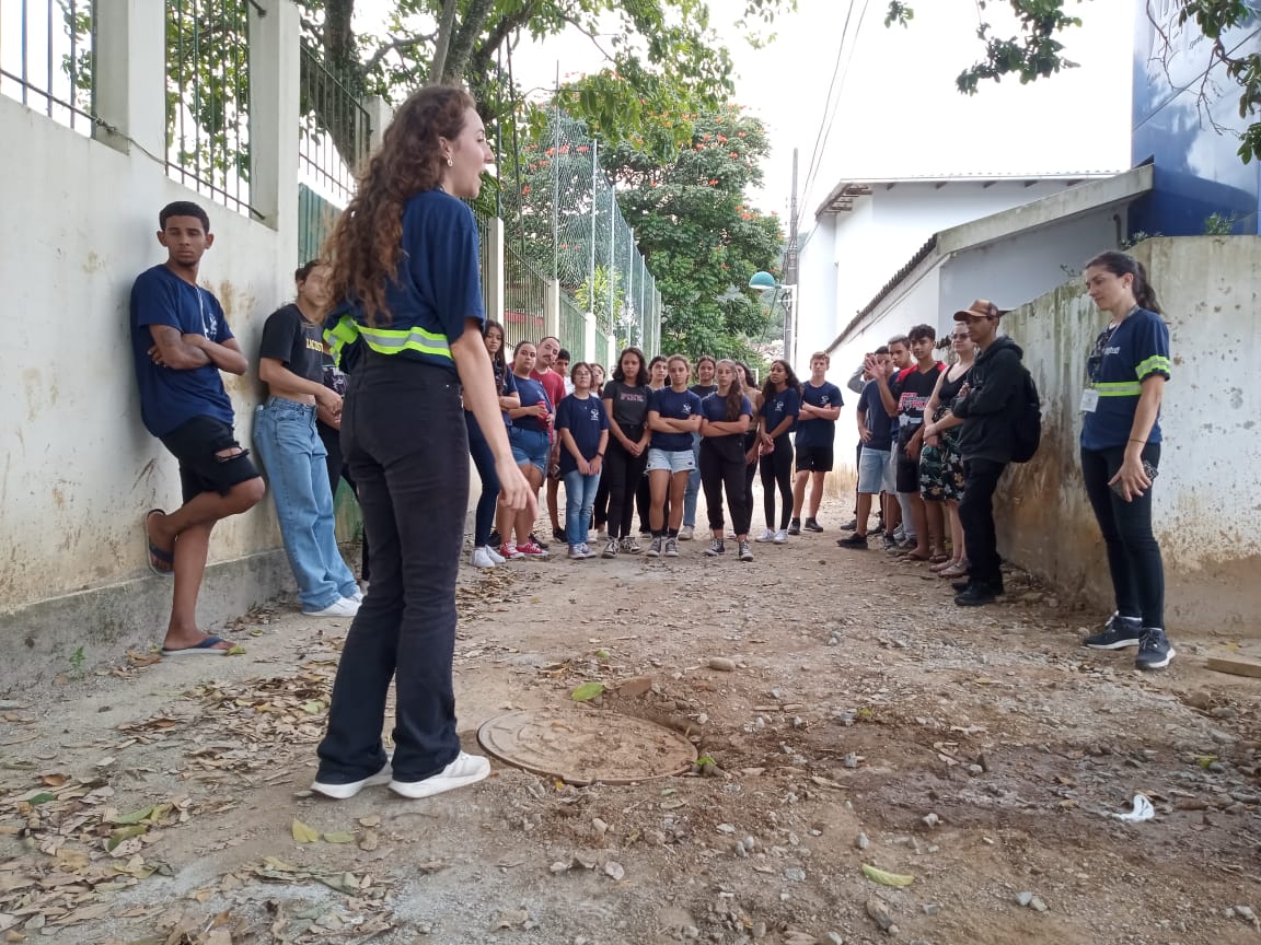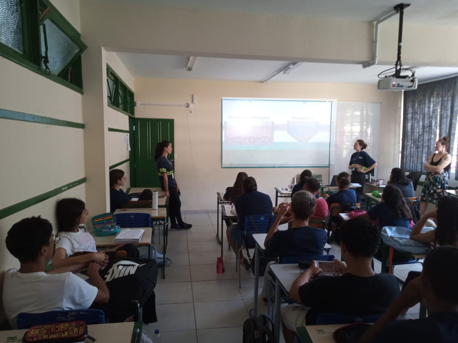 A ação fez parte do mês de conscientização sobre a água e os recursos hídricos. Durante a oficina, os educadores ambientais apresentaram vídeos explicativos sobre as diferenças de cada um dos eixos. São eles: 1) os serviços de coleta e destinação correta de resíduos sólidos, 2) coleta e tratamento de esgoto, 3) tratamento e distribuição de água potável e 4) drenagem urbana das águas pluviais. Depois dos vídeos, os estudantes foram até a rua lateral à escola para conhecer a obra de implantação de redes de coleta do Sistema de Esgotamento Sanitário do Saco Grande.
