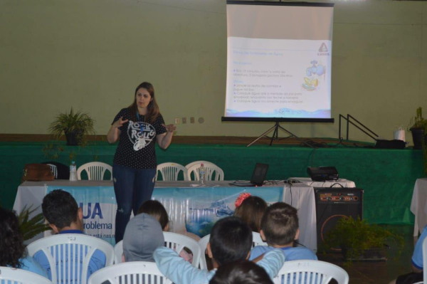 Com o tema “Água, nosso bem mais precioso”, Fernanda falou para alunos da Escola Professora Coralia Gevaerd Olinnger sobre as necessidades vitais da água no dia a dia, como é feito o tratamento na Casan do município e ainda reforçou dicas de economia. “Eu trago para as crianças, jovens e adolescentes essa perspectiva de como economizar água e de por que economizá-la”, disse.