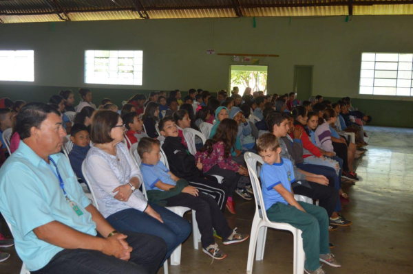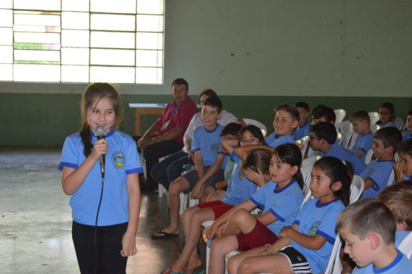 Centenas de alunos do primeiro ao nono ano escolar assistiram nesta terça-feira, dia 20, a uma palestra sobre o uso consciente da água em Passos Maia. O tema foi abordado pela bióloga da Casan de Chapecó, Fernanda Schuster, em mais uma etapa da campanha de conscientização sobre a importância da preservação e economia da água, lançada em novembro de 2017 pela Câmara de Vereadores de Passos Maia.