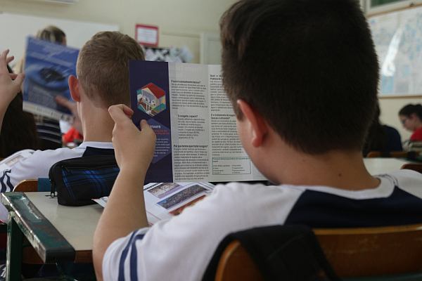 A ideia é fazer com que os alunos atuem como multiplicadores das informações, estendendo aos familiares o que foi discutido na sala de aula. Para reforçar, a CASAN elaborou e distribuiu um panfleto, que traz dados sobre: