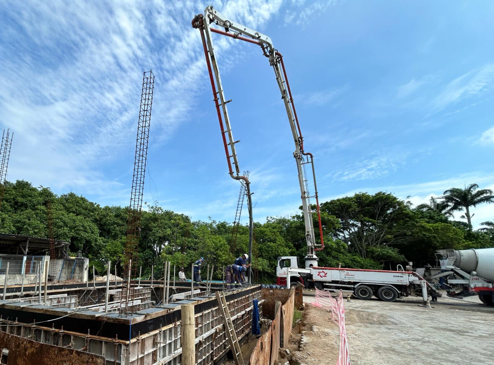 A Estação de Tratamento de Esgoto Insular, localizada no aterro da baía sul próximo à Ponte Pedro Ivo Campos, em Florianópolis, passou por uma nova etapa de concretagem nesta quarta-feira (28). Foram utilizados 20m³ de concreto e mobilizados quatro caminhões betoneira para as estruturas de um reservatório que atua na depuração do esgoto. A CASAN (Companhia Catarinense de Águas e Saneamento) está intensificando as operações de concretagem para acelerar o andamento das obras de ampliação e modernização da unidade.