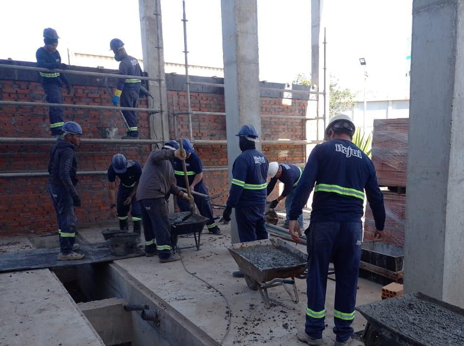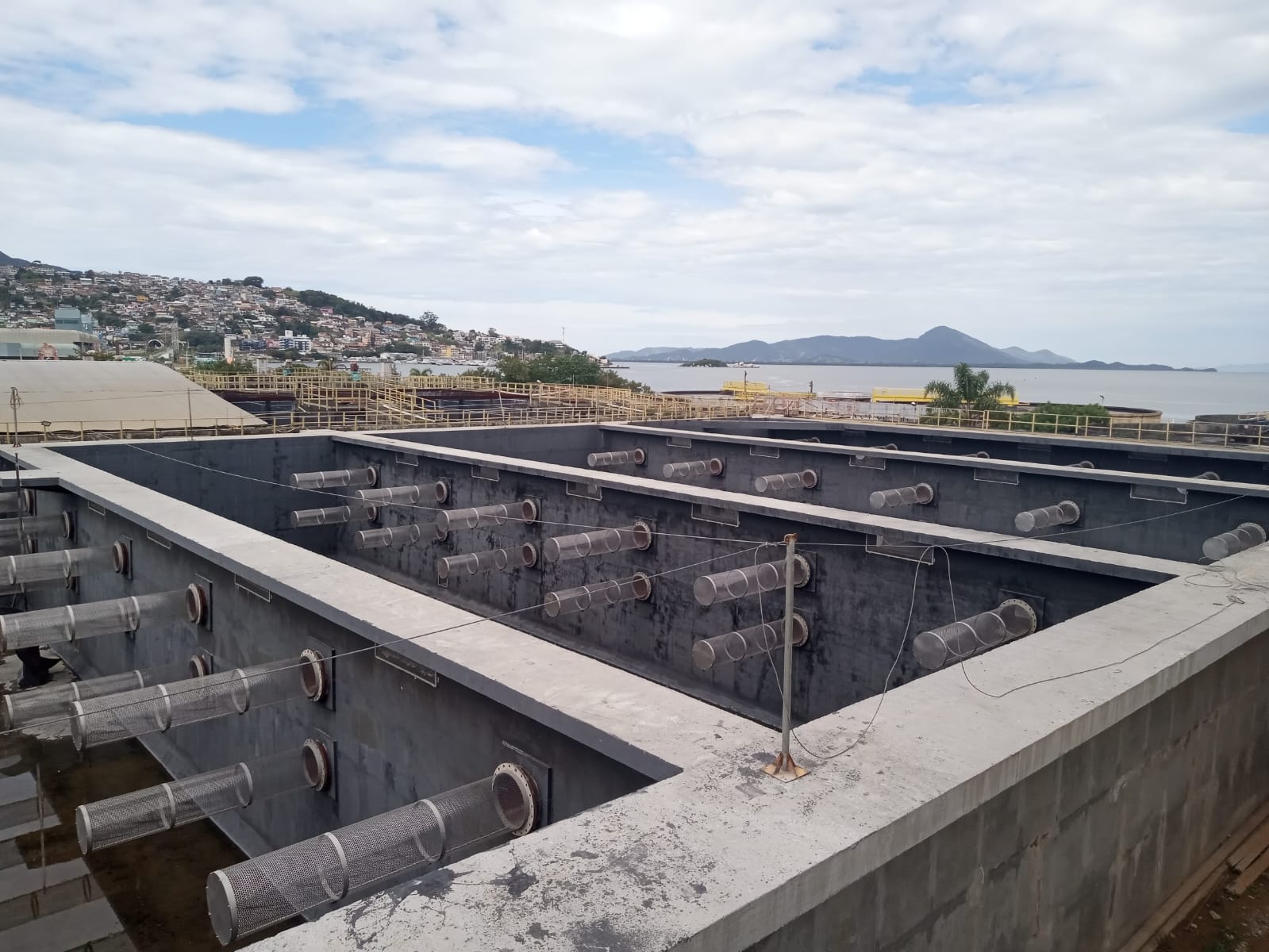 As unidades de tratamento que já tiveram a sua estrutura civil finalizada entraram em uma nova fase de construção com a execução dos acabamentos, impermeabilização, interligações e montagem de equipamentos internos. Uma dessas unidades, que se encontra em estágio bastante avançado, é o tanque aerador (reator MBBR). O tanque utililizará a tecnologia MBBR (Reator de biofilme em leito móvel), com a utilização de biomídias que são pequenas peças plásticas de baixa densidade que permitem o aumento da eficiência da decomposição de matéria orgânica.