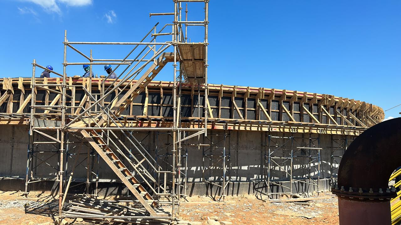 A estrutura em estágio mais adiantado é o decantador secundário, em fase final de construção. Essa é a unidade responsável pela separação da parte líquida e da parte sólida do esgoto.