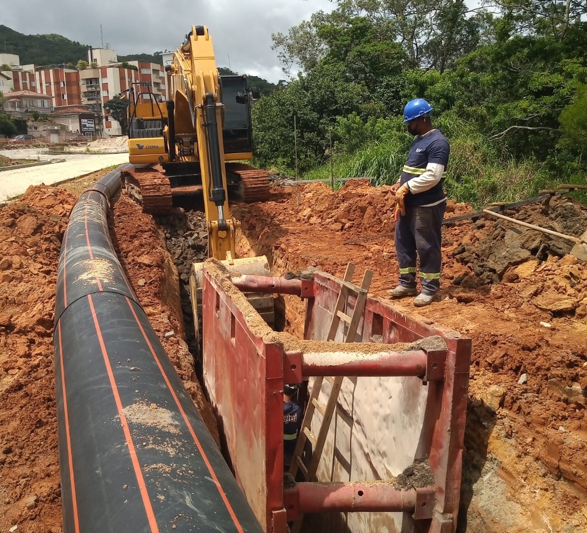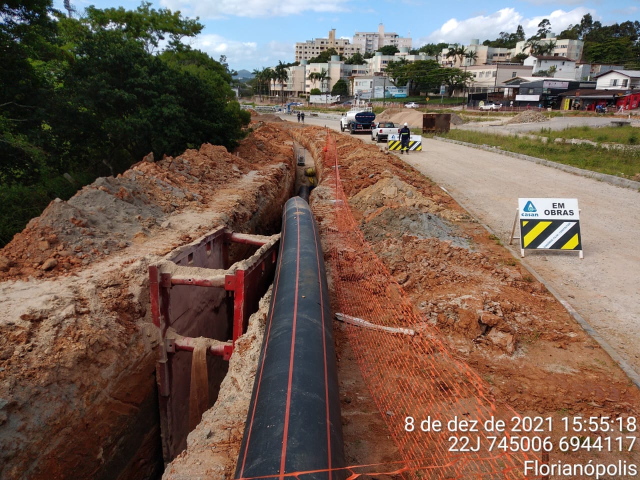 A CASAN está realizando escavações no trecho em duplicação da rua Deputado Antônio Edu Vieira, no Bairro Pantanal, em Florianópolis, para a implantação de tubulações de emissário terrestre de esgoto. As obras são realizadas em conjunto com a Prefeitura Municipal para adiantar a revitalização da via.