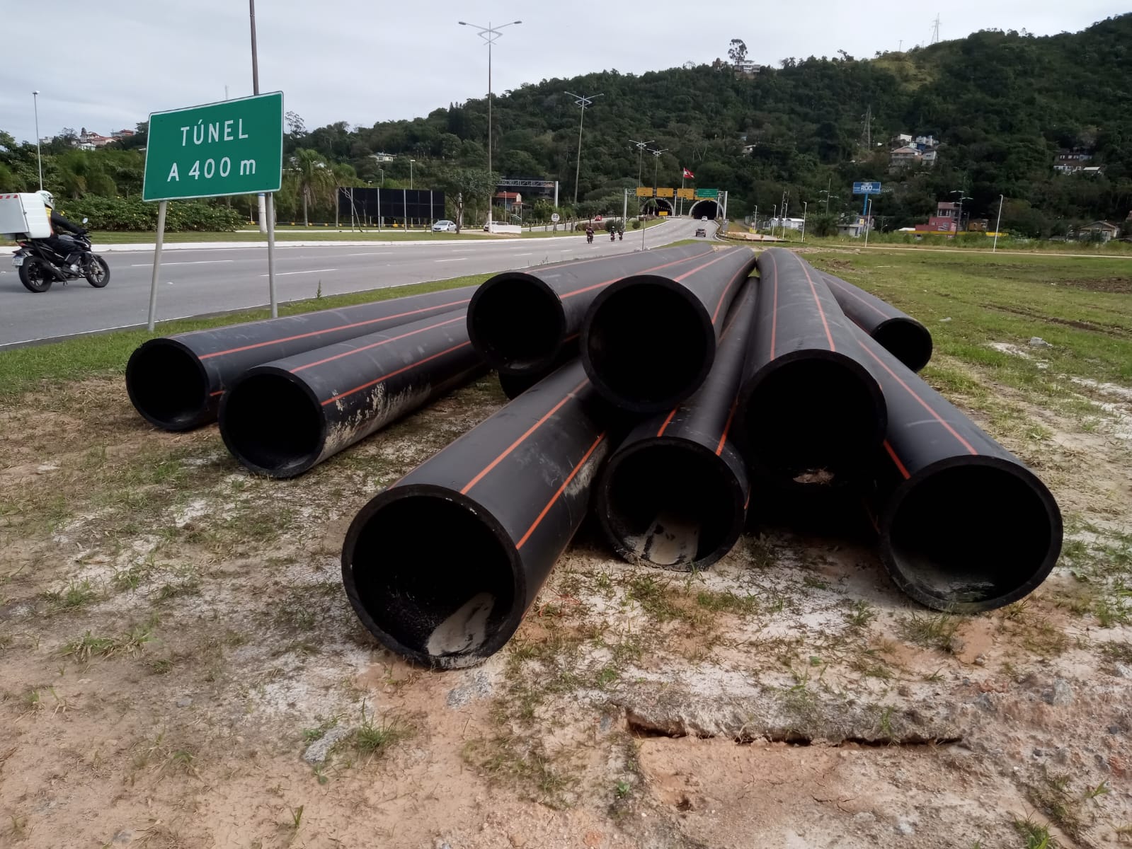 A CASAN está trabalhando para acelerar a implantação do emissário terrestre do Sistema Insular de Esgotos de Florianópolis, com obras no aterro da Baía Sul, ao lado da ciclovia da Via Expressa Sul (SC-401), no bairro Saco dos Limões e na Trindade, próximo ao shopping Villa Romana.