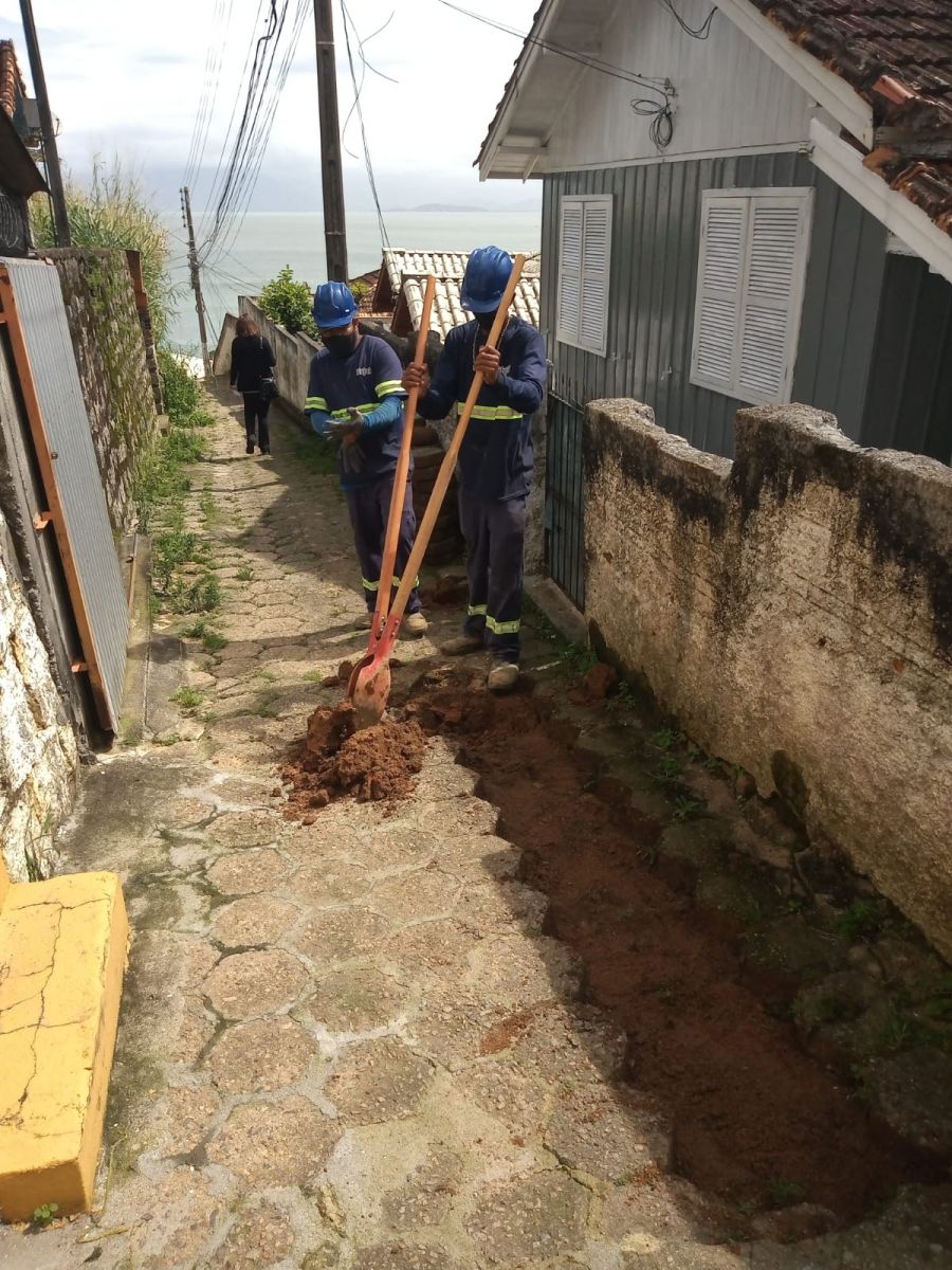 A primeira etapa da instalação da rede é realizada em servidões, travessas e vias estreitas do bairro. Por esse motivo, o trabalho é feito manualmente ou com a utilização de máquinas leves. As vias são restauradas ao final do serviço e os acessos mantidos para não interromper o trânsito na comunidade. Agentes do programa socioambiental do SES Insular fazem a comunicação prévia da data de início das obras e prestam informações aos moradores sobre o sistema.