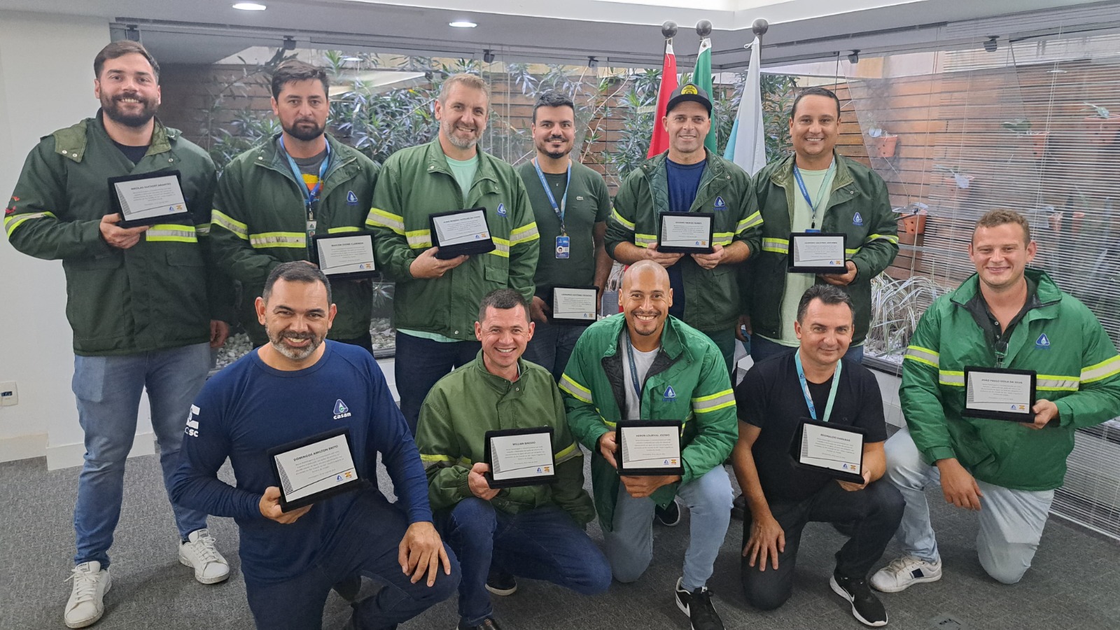 Os colaboradores da CASAN (Companhia Catarinense de Águas e Saneamento) que se dedicaram por mais de 15 dias para garantir o retorno do abastecimento na enchente no Rio Grande do Sul foram homenageados nesta semana em Florianópolis. Ao todo, 11 funcionários receberam placas do presidente Edson Moritz e da Diretoria da Companhia, no auditório da Matriz.