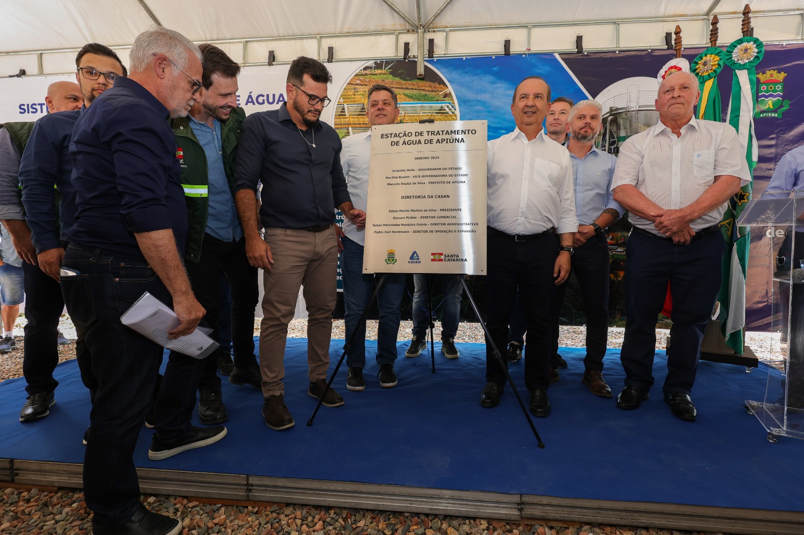 “O novo sistema de abastecimento é mais uma obra das várias que estamos fazendo junto com a CASAN por todo o estado de Santa Catarina, buscando sempre entregar mais para as pessoas”, afirmou o Governador após o descerramento da placa da nova Estação de Tratamento de Água. “Água é vida, água transforma e um município como Apiúna precisa ter esse acesso, com novas estações e tubulações. Contem sempre comigo para trabalhar junto”.