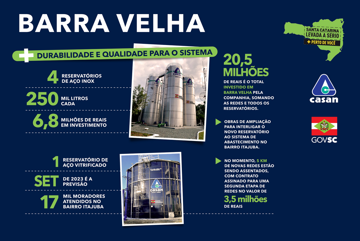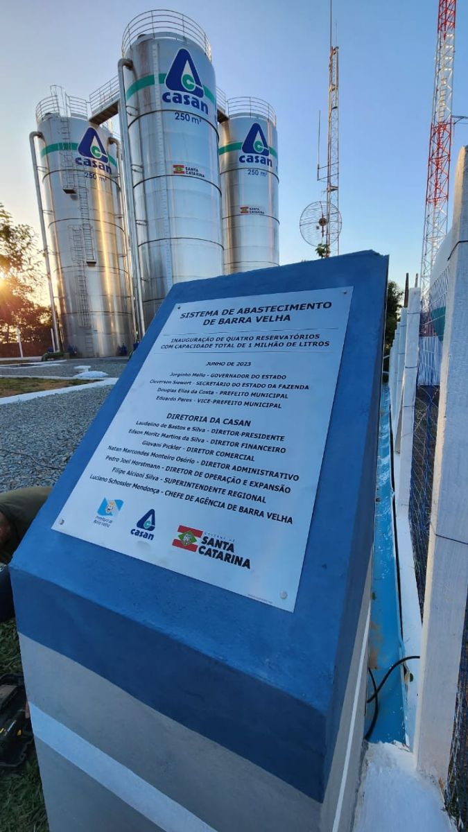 Estiveram também presentes no local o diretor-presidente da CASAN (Companhia Catarinense de Águas e Saneamento), Laudelino Bastos, e o prefeito de Barra Velha, Douglas da Costa. A nova reserva inaugurada traz mais segurança hídrica para situações de manutenção de rede e também nos dias de grande consumo na alta temporada, quando a população da cidade salta dos 45 mil para até 110 mil moradores.