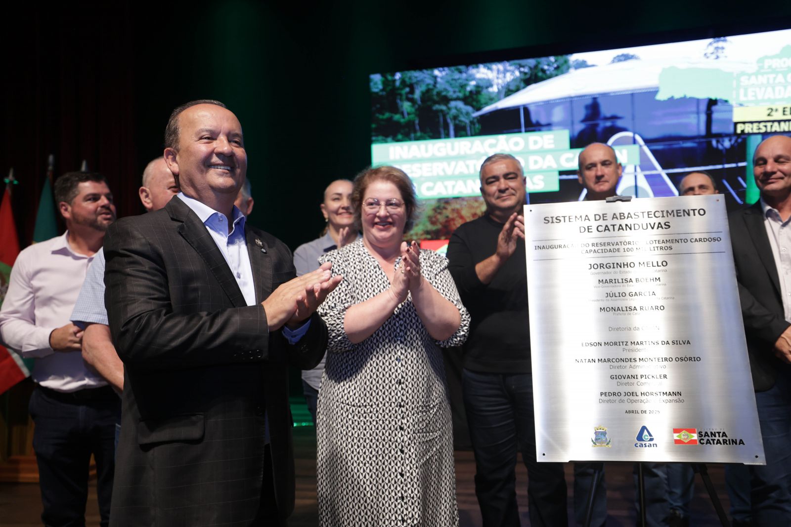 Dentre os investimentos, foi entregue um novo reservatório de aço inoxidável para Catanduvas, cuja placa foi descerrada simbolicamente pelo governador Jorginho Mello e o diretor de Operação e Expansão da CASAN, Pedro Joel Horstmann. Instalado no Loteamento Cardoso, o reservatório tem capacidade para 100 mil litros de água e atende 2400 moradores no próprio Loteamento Cardoso, no Distrito Industrial I, no Lajeado dos Bandeira e em parte do Bairro Cidade Jardim.