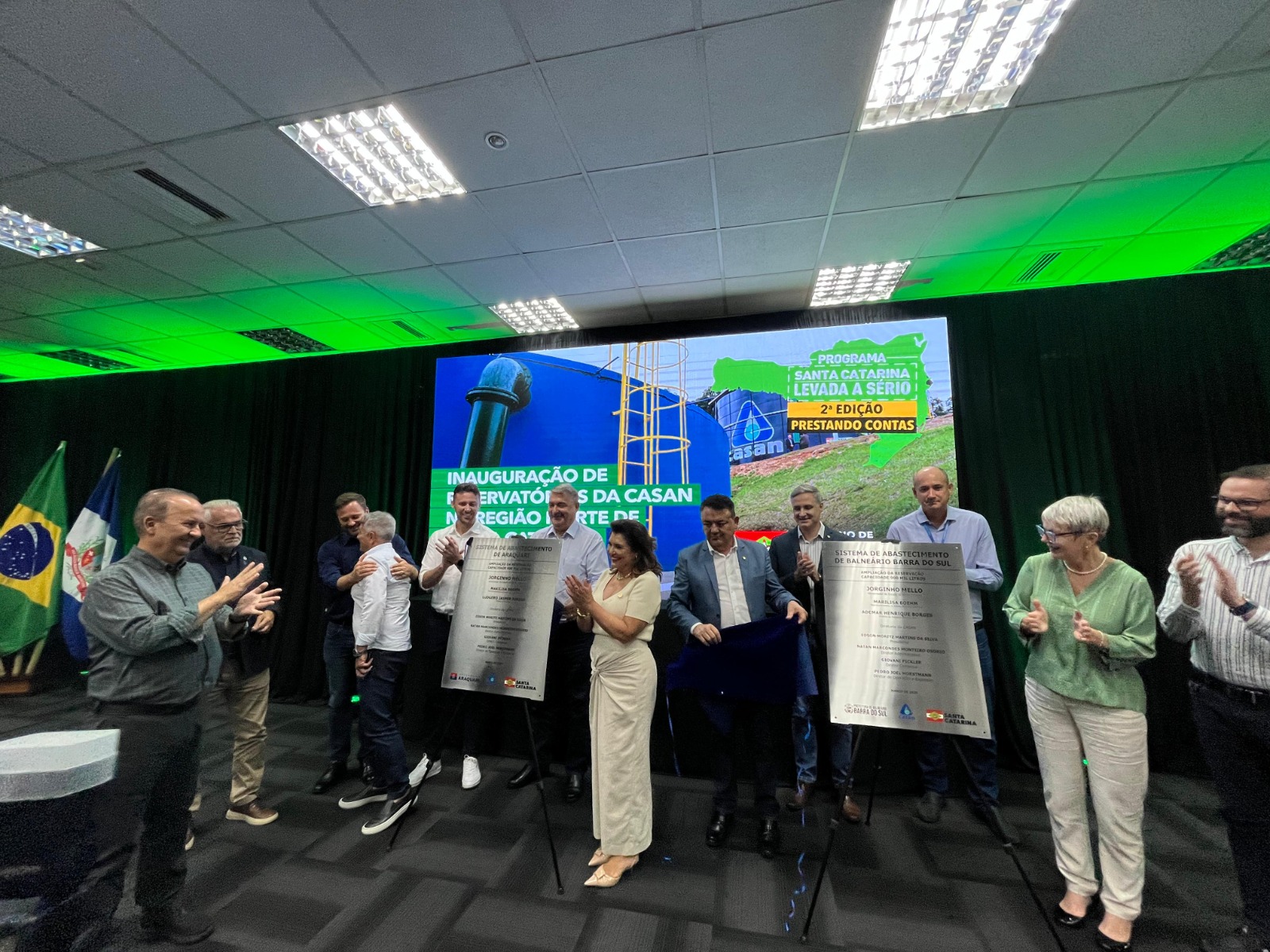 Durante o evento, o governador Jorginho Mello e o presidente da CASAN, Edson Moritz, fizeram a inauguração simbólica de seis novos reservatórios de aço inoxidável. No valor total de aproximadamente R$ 8 milhões, as estruturas garantem mais 1,5 milhão de litros de água reservada.