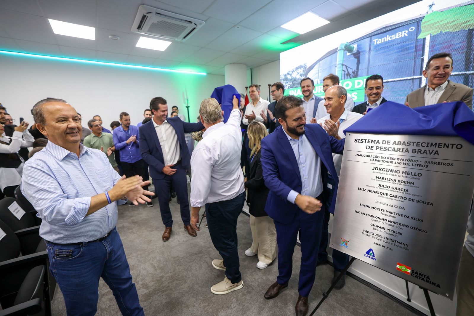 Durante o encontro, o governador Jorginho Mello e os diretores comercial e de operação da CASAN (Companhia Catarinense de Águas e Saneamento), Giovani Pickler e Pedro Joel Hortsmann, fizeram a entrega de nove reservatórios para as cidades de Braço do Norte, Laguna, Pescaria Brava e Treze de Maio, que reforçam a segurança hídrica e elevam a capacidade de reserva em 4,5 milhões de litros. Todos os reservatórios foram construídos com material moderno, que garante mais segurança e durabilidade. Um investimento de R$ 9,8 milhões, beneficiando mais de 86 mil pessoas.