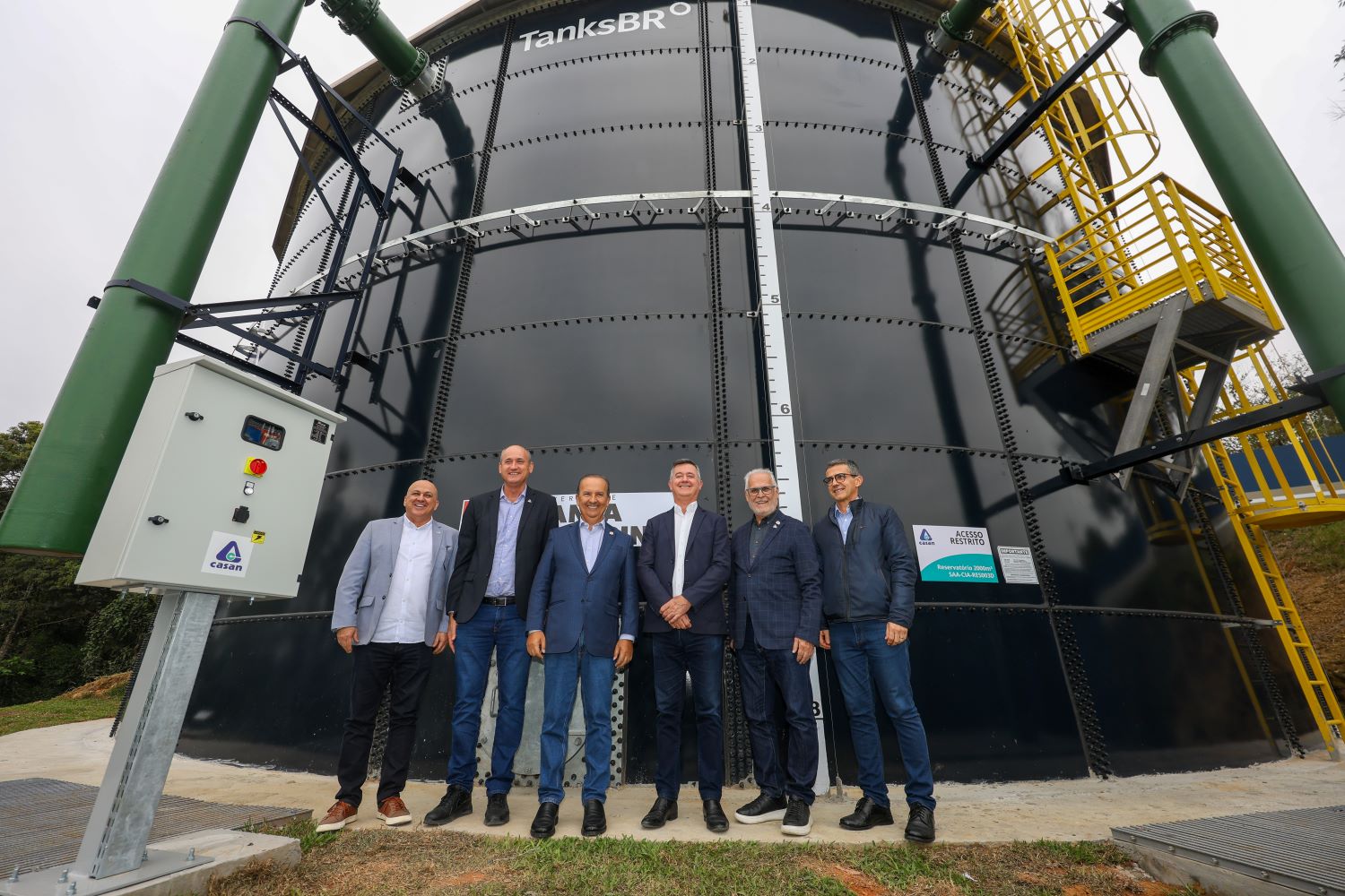 A maior cidade do Sul do Estado ganhou um importante reforço no abastecimento nesta sexta-feira, 4. São dois novos reservatórios da CASAN (Companhia Catarinense de Águas e Saneamento) com capacidade para armazenar 3,5 milhões de litros de água. A inauguração aconteceu no Bairro Próspera e contou com a presença do governador Jorginho Mello, do presidente da Companhia, Edson Moritz, do diretor de operação e expansão, Pedro Joel Horstmann, do diretor comercial, Giovani Pickler, e demais autoridades, funcionários da CASAN e convidados.