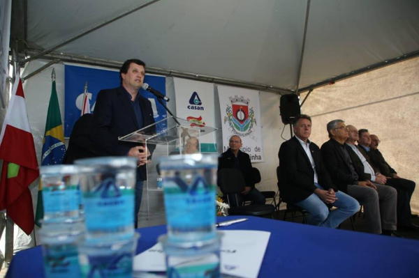 Em Forquilhinha, onde iniciou a agenda, Pinho Moreira e o presidente da CASAN, Adriano Zanotto, inauguraram o Sistema de Esgotamento Sanitário da cidade, um investimento de R$ 27,3 milhões que em sua primeira etapa vai beneficiar mais de 7 mil moradores de seis bairros.