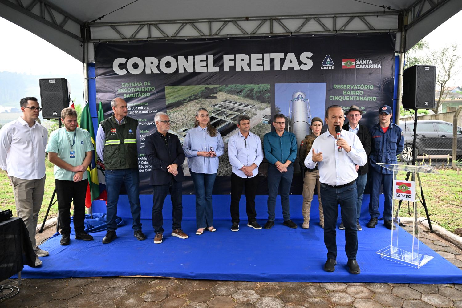 “O saneamento básico é fundamental para a qualidade de vida das pessoas e para o desenvolvimento das nossas cidades. Com esse novo sistema, estamos garantindo mais saúde e dignidade para os moradores de Coronel Freitas. Nosso governo está comprometido com obras que fazem a diferença no dia a dia das pessoas”, afirmou o governador Jorginho Mello.