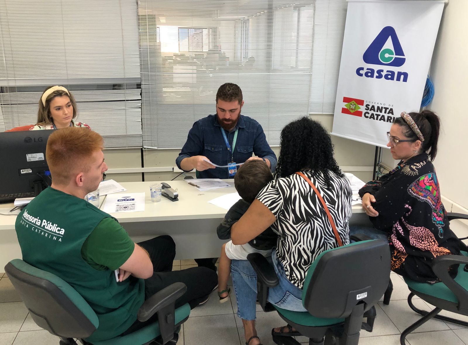 Ao mesmo tempo em que mantém ponto de acolhimento na comunidade e atendimento presencial para antecipação das indenizações no Estreito, a CASAN disponibiliza canais de atendimento por telefone para tratar das demandas dos moradores.