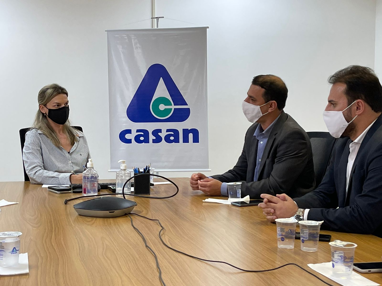 A presidente da CASAN Roberta Maas dos Anjos, juntamente com Diretoria e Procuradoria, recebeu o prefeito Junior de Abreu Bento e procuradores para falar sobre investimentos e a Operação Verão em Garopaba. O município aguarda os turistas nesta temporada com um Sistema de Abastecimento reforçado. Com a ampliação e substituição de redes de distribuição, além de perfuração de novos poços para captação de água, a CASAN vai atender moradores e a população flutuante com maior segurança.