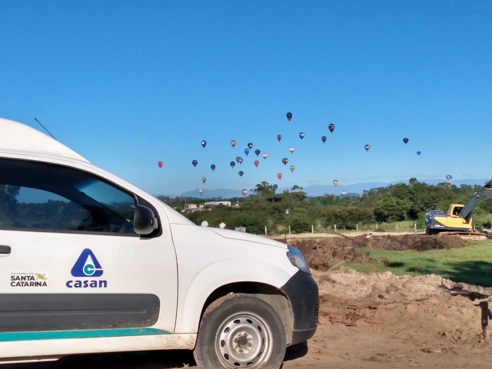 Na semana passada, as obras foram realizadas tendo ao fundo um lindo cenário: dezenas de balões que participam do 32° Festival Internacional de Balonismo da vizinha Torres (RS), o maior festival do gênero na América Latina.