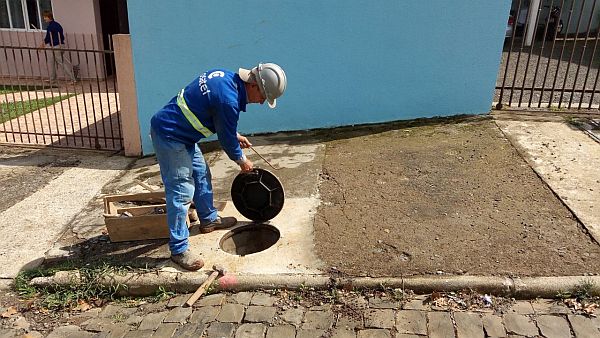 | Caixas de Inspeção estão sendo instaladas em frente às residências, mas moradores devem manter suas fossas e sumidouros até receberem orientações da CASAN para fazer a conexão ao sistema público de esgotamento sanitário. |