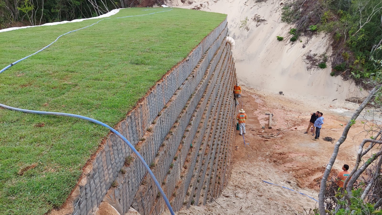 Com sete metros de altura, a contenção foi feita com a tecnologia de solo reforçado, estruturando uma face composta por pedras. Uma parede externa vegetada vai integrar a obra com a paisagem natural. A obra é realizada pela empresa Dang Engenharia, do Paraná, vencedora de licitação, e foi aprovada pela FLORAM.