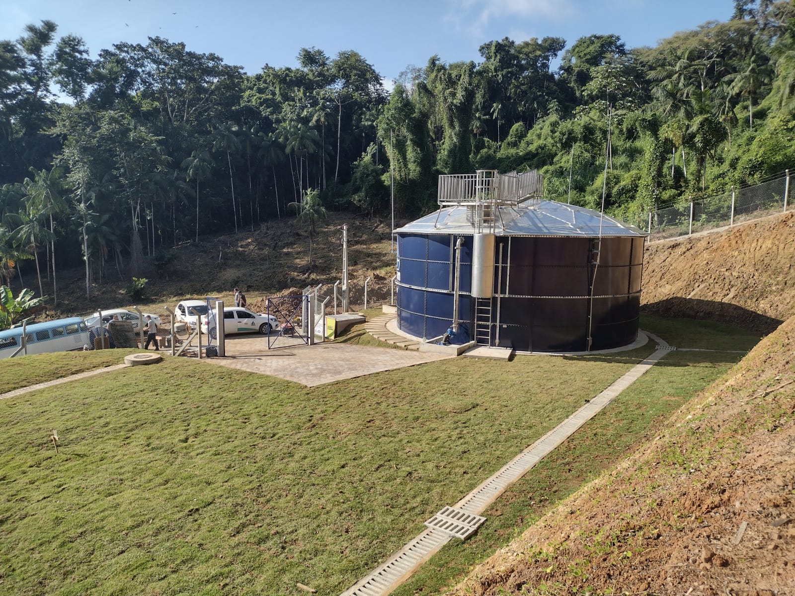 O reservatório com capacidade para 400 mil litros, construído com tecnologia de placas vitrificadas, já está montado no Bairro Encano. Agora a Companhia executa as etapas de implantação de redes de adução e distribuição para os moradores.